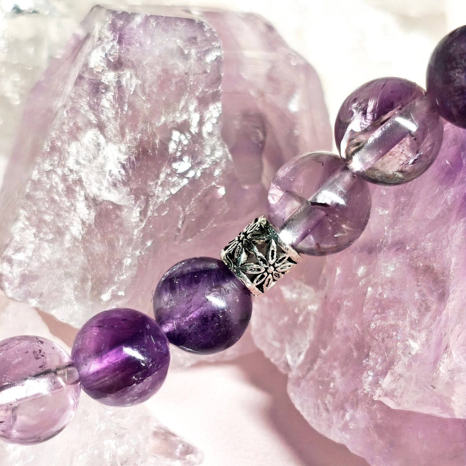 Due to the natural characteristics of amethyst, each bracelet may display slight variations in color, clarity, and natural inclusions. Lighting conditions, screen settings, and the unique structure of each crystal can also create subtle visual differences. These natural variations make every bracelet one-of-a-kind and are not considered defects.