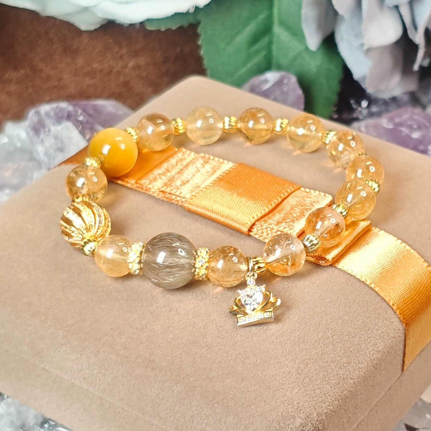 A natural crystal bracelet designed to attract wealth, clarity, and opportunity.
