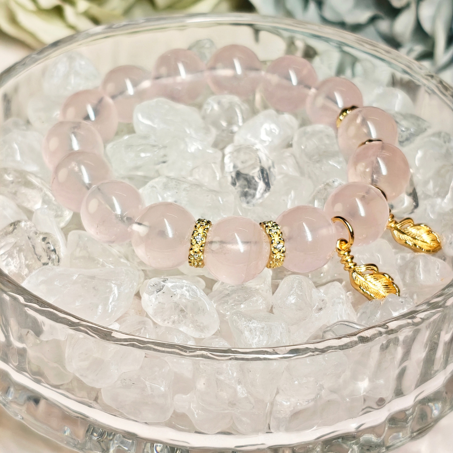 Due to the natural characteristics of rose quartz, each bracelet may show slight variations in color, translucency, and natural inclusions. Lighting conditions, screen settings, and the unique structure of each crystal may also create subtle visual differences. These natural variations make every bracelet unique and are not considered defects.